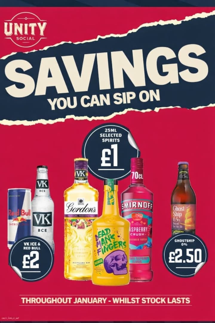 £2per pint on selected beers and £1 per drink on a selection of drinks.